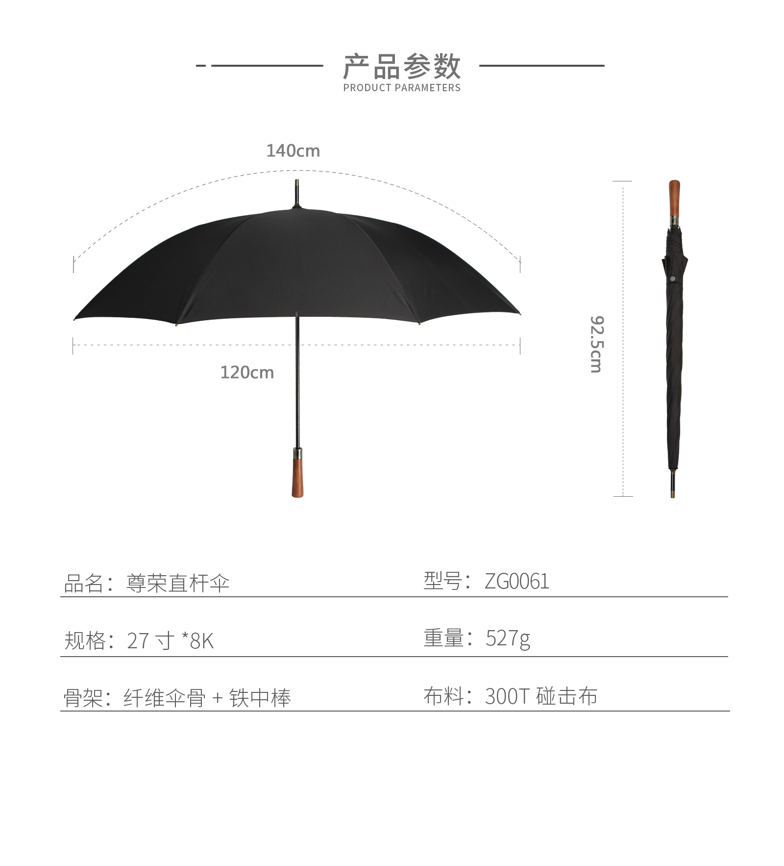 尊榮木柄直桿傘